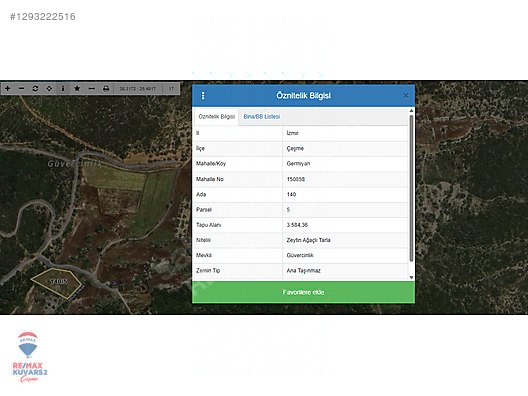 ÇEŞME GERMİYANDA SATILIK 3584 M2 TEK TAPU TARLA